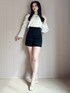 たまにはショートパンツコーデ♡ ハイウエストで低身長さんもスッキリ着れるのでおすすめです✨ ブラウスは袖のギャザーと胸元のデザインで女性さらしさ◎!