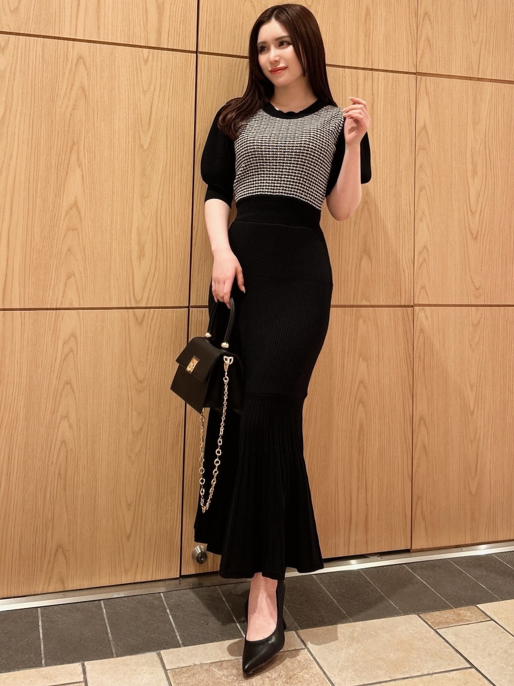 去年も大人気だったマーメイドワンピ♡ 細かいツイードが上品なイメージで着ていただけます✨ 生地感は薄すぎず、インナーラインも映りにくいのが嬉しいポイント♪