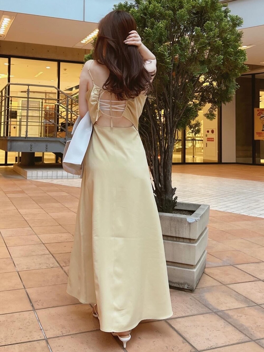 バックスタイルまで可愛い主役キャミワンピ♡ SSらしくイエローを選んでみました✨ 肩紐と後ろのリボンが調節可能なので自分の体型に合わせて着用いただけます! 肌寒い時期は中にトップスをレイヤードしたり、ジャケット合わせがおすすめです◎!