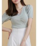 襟元のビジューがより上品さをプラスしてくれるトップス✨ 胸元にギャザーが入っているのでさらに女性らしさ◎!