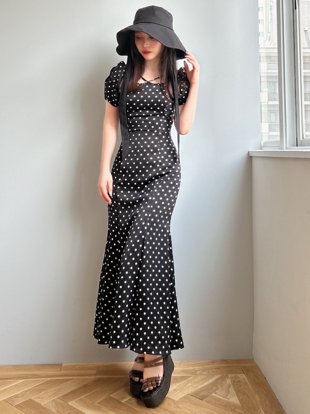 予約販売の時から大人気のワンピース♡ ウエストから腰にかけてタイトになってるのでスッキリ着ていただけます! ドット柄で写真映えもばっちりです♪