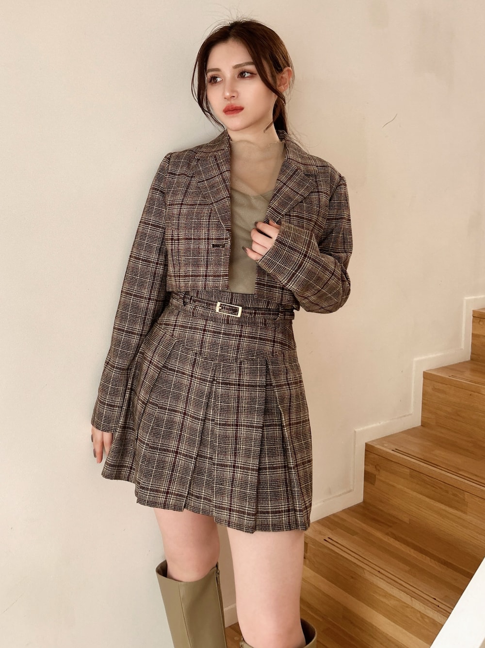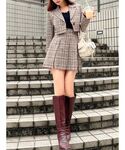 毎年大人気のジャケットセットアップ♡ ジャケットの丈感が短めなので、低身長さんでもバランス良く着ていただけます✨ 今年は秋ムードUPしてくれるチェック柄をチェイス! 同系色でまとめてみました♪