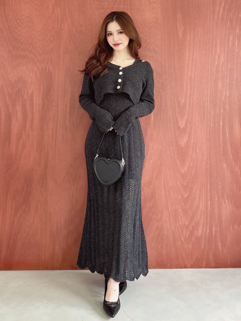 柔らかいニット生地で着心地抜群♡ カーディガンがかなり短めになってるので低身長さんでもバランスよく着ていただけます✨ パンプスとミニバック合わせで綺麗めに着てみました♪
