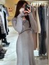 細かいツイードのデザインがお上品なイメージにしてくれるワンピース♡ しっかりウエストの切り替えがあり細見え+足長効果で着ていただけます✨ また、締め付けがなくとても着心地がいいので即リアルバイしました♪