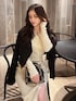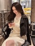 ライダースが短めなので羽織るだけでスタイルUP✨ ワンピースはフロントにデザインがあるので羽織物を着てもシンプルすぎなくて可愛いです♪ サイズが選べるのも嬉しいポイント!