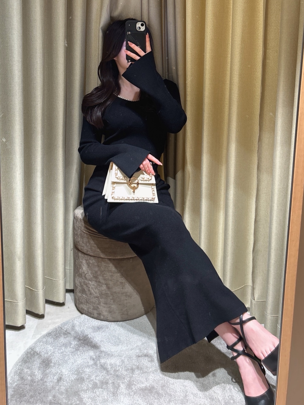 SANA(RESEXXY)のワンピース「デコルテパールニットワンピース」を使ったコーディネート