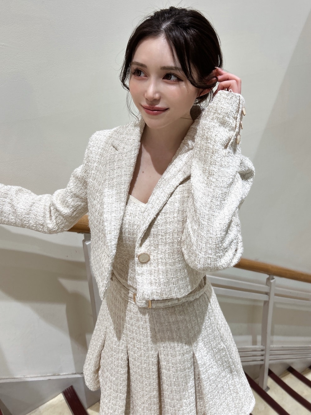 SANA(RESEXXY)のテーラードジャケット「ツイードクロップドジャケット【セットアップ着用可能】」を使ったコーディネート