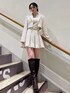 ゴールドのラメ糸とツイードで高級感◎のアイテム✨ プリーツのAラインスカートはベルトでウエストを絞れて太ももの張りをカバーできるのでウェーブさんも細見えです!