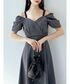 ウエストの上の方から切り替えがあるフレアラインなので足長効果抜群! お腹や太ももをフレアラインでカバーでき、ウエストはスッキリしてるので細見え効果◎✨ 肩はオフショルでも着ていただけます♪