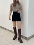 落ち着いた色で合わせた、キュロットコーデ☆ 【tops】薄手でウールが入っているので、晩夏~冬直前まで着れる万能ニット!パフスリーブがさりげなく二の腕もカバー◎ 柔らかくて、やや伸縮性もあるので着心地ニットです♪【pants】ウエストゴムの楽ちんニットキュロット!お尻、太もも周りも締め付け感ないので、インナーとしても1枚見せでも可愛いです!→158cm/骨格ウェーブで着用◎色違いで欲しいアイテム♡【boots】美脚効果間違いなしのロングブーツ!丸いスクエアなシルエット×高すぎないヒールが、どんなコーデにも相性抜群♪横幅広めな私ですが、普段23.5cmで36番(23.5)サイズがぴったりです。