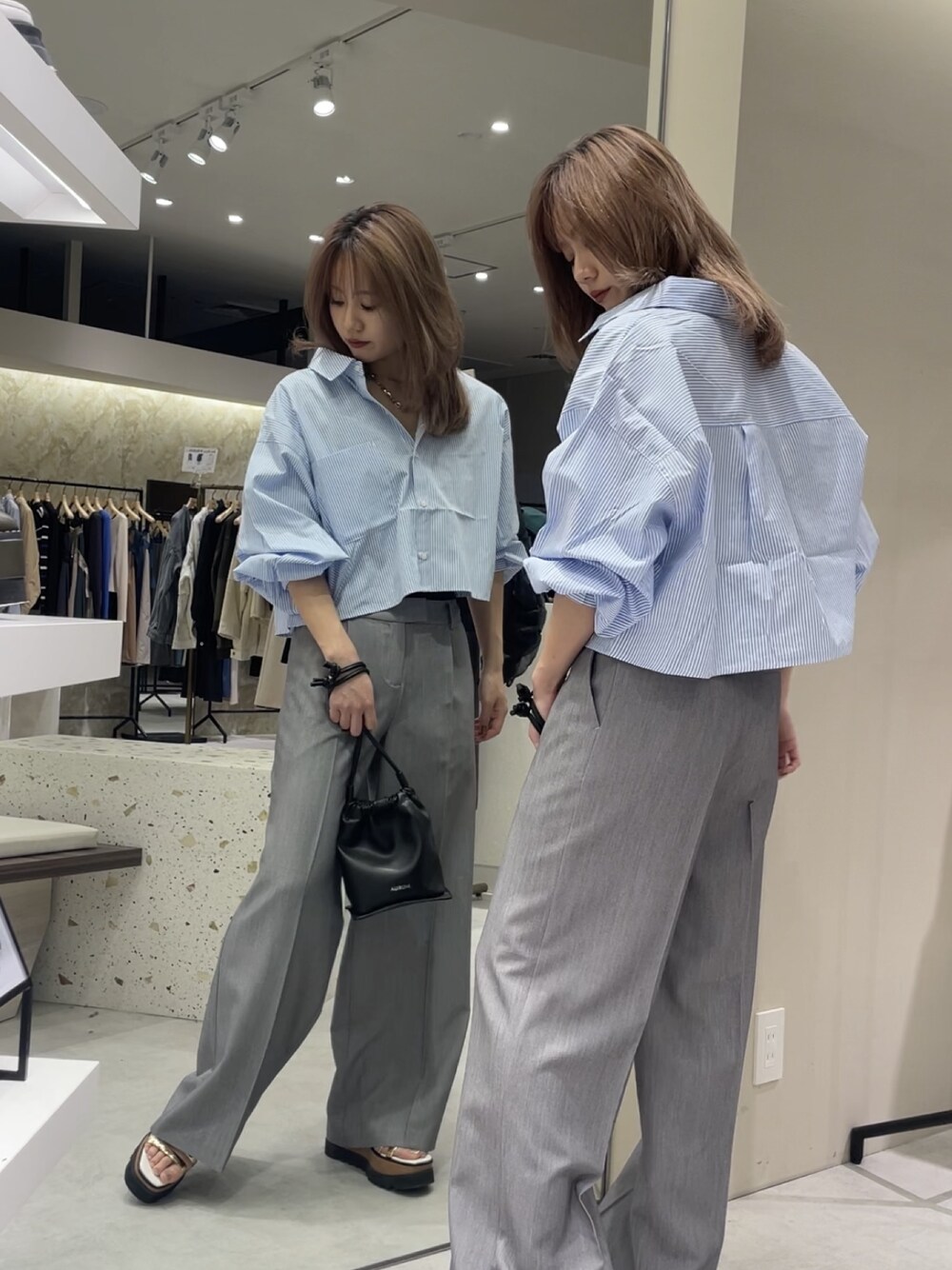 【Instagramリール着用】大人カジュアルコーデ♡【shirt】トップス風でも羽織でも着用OK!着回し抜群ストライプシャツ!おへそ辺りのショート丈です。透けにくいですよ♩【pants】トレンドのローライズパンツ。さらっとした生地感で、ゆったりルーズなシルエットなので体型カバーも♡お尻が小さく見える+脚を綺麗に見せてくれます♡158センチ/Sサイズでくるぶし下あたり。厚底サンダルや、スニーカー合わせがオススメ◎【shoes】毎年大人気のクリアサンダル!程よい厚底でスタイルアップ×水に濡れても大丈夫なのでお手入れもしやすいです!(普段23.5センチ/足幅普通で36センチ着用)