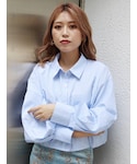 本田莉央奈(MURUA)のシャツ/ブラウス「ストライプクロップドカラーシャツ」を使ったコーディネート