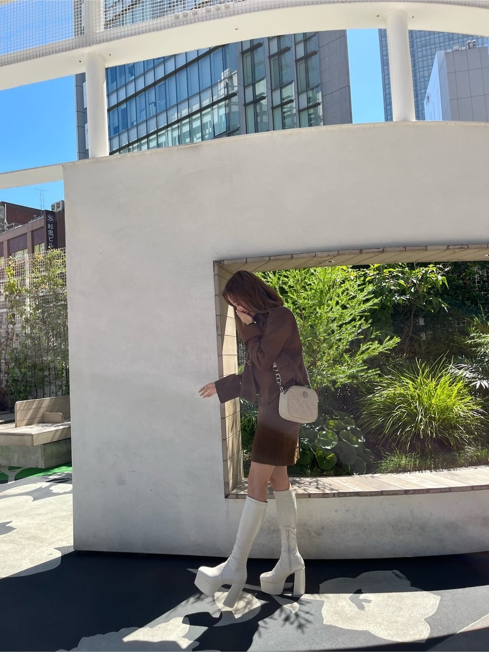 【綺麗目ブラウンコーデ!!】 セットアップジャケット軽くて、着心地抜群です。丈もおへそしたくらいで来て頂けるので短すぎずな丈感です。何より、このボタン可愛くないですか?? スカートは短すぎなく、スーパーハイウエストなのでしっかりおへそ上から来て頂けるのでスタイルアップする事間違えなしです!! インナーパンツ着いてるので凄く便利です。 【shoes】11.8センチのヒールです。23.5でMサイズ着用です。