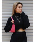 熊澤姫奈(EVRIS)のニット/セーター「タイトクロップドニットトップス【セットアップ着用可能】」を使ったコーディネート