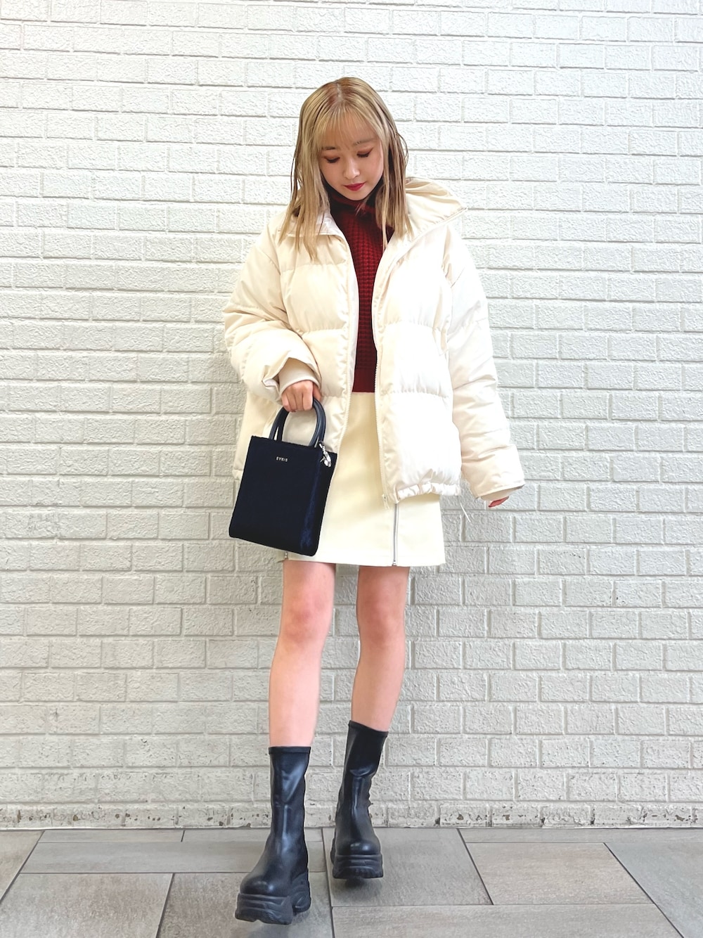 【クリスマスデートコーデ】 【outer】ダウン60%フェザー40% であったかく軽くて着心地抜群です🙊🤍 下のゴムで丈調節して頂けるのと 袖口のリブが空気通さなくしてるので暖かい所がポイントです🙇♀️ こーゆーシンプルで丈も使いやすいアイテムって自然に手に取りたくなりますよね💖 【tops】生地に弾力性がとてもあり やや、ふわっとしていて可愛いです‼︎ ホワイトと合わせる事により優しめで くすんでる赤なので強すぎずに見せてくれますよ🎶 【skirt】インナーパンツ付き! Sサイズ着用です。 【shoes】5.5㎝の厚底です! 23.5㎝でMサイズ着用です。