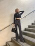 【ロングコートを使った綺麗目コーデ】 (outer)156㎝でこの丈感です。 襟が大きいので子顔効果😳✨ 立てても、ぼたんを締めても雰囲気変えて楽しんで頂けます‼︎ (pants)鬼盛れpants💖🎶 タイトですが、伸縮性があり楽ちんで 足のライン綺麗に見えます👀 (tops)かなりタイト目です‼︎ しっかりした生地でお下着のライン出ないのがおすすめポイントです🙊