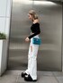 (EVRISデザインデニム🌞✨) (トップス) タイトなシルエットで屈んでも胸元気にせず着用可能です‼︎ 生地がしっかりとしていて薄くないので、 下着ラインでないですよ! (デニム)めーっちゃぽこぽこが可愛い‼︎ 伸縮性があり動きやすいです‼︎ 155センチSサイズ着用です! (バック) チェーンがゴージャス❤️🔥 キラキラでシンプルなコーディネートにもこれを背負うだけで、シンプルすぎずに! (シューズ) 23.5センチMサイズ着用!