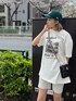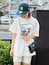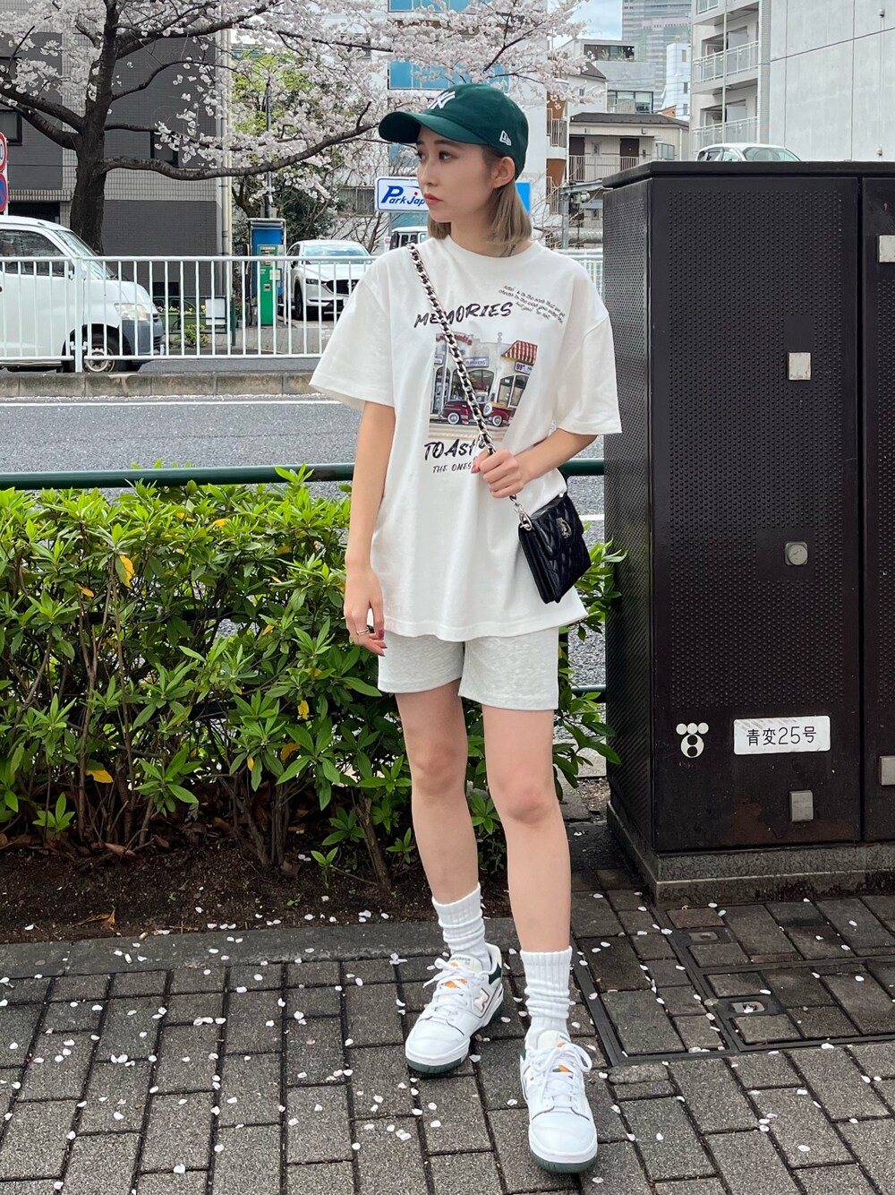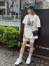 【お花見おすすめコーデ🌸】 (Tシャツ) 156センチでこのサイズ感です❤︎ グラフィックフォトが可愛い〜‼︎‼︎ 小柄な方はワンピース風がおすすめ👗 ゆるっと楽ちんコーデ暖かくなるとついついしたくなります😮💨 (バイカーパンツ) 伸縮性がありで履き心地抜群🔥🔥 そんなに、リブがピッタリすぎないように作られてるので太ももの付け根が気になる私でもありがたいくらいに盛れます💞 (バック) キラキラで、チェーンがゴージャスで可愛い‼︎大人気の予感😆‼︎