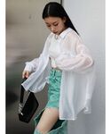 【シアーシャツコーデ‼︎】 (tops) パットインです‼︎ かなり分厚めなので、安心感抜群🔥 紐長さ2段階で変えれますよ‼︎ (pants)156㎝Sサイズ着用! 生地がしっかりしているので足のラインがまっすぐ綺麗に見えます👀 柄が可愛いですよね😳🤍 (シャツ) お尻まで隠れるオーバーサイズです! 後ろが長いので結びやすく、重たく見えないですよ! 真夏の冷房対策にもなるので1枚あったら絶対便利です🤍