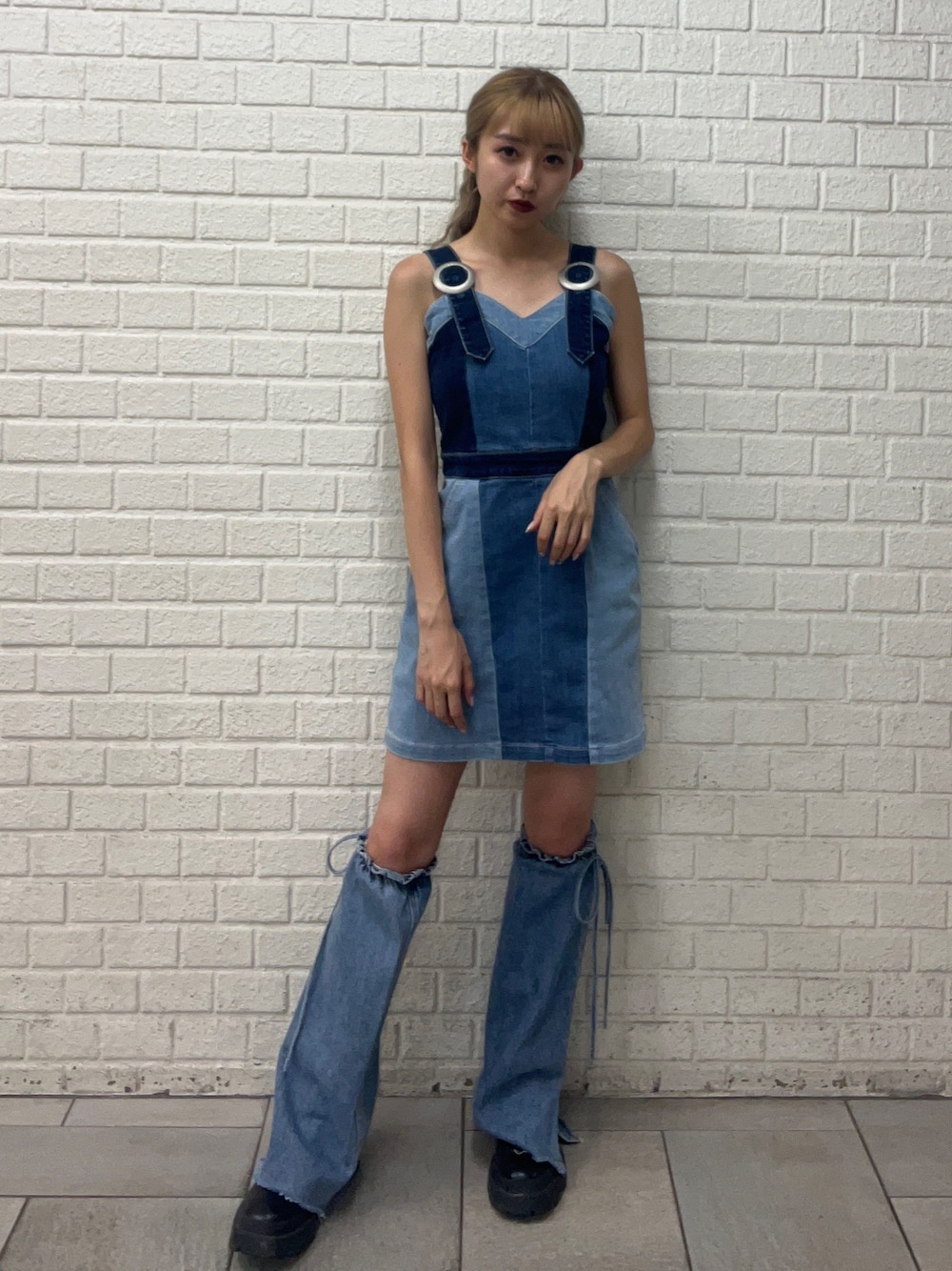 熊澤姫奈(EVRIS)のワンピース「【10周年記念】ブロッキングデニムミニワンピース」を使ったコーディネート