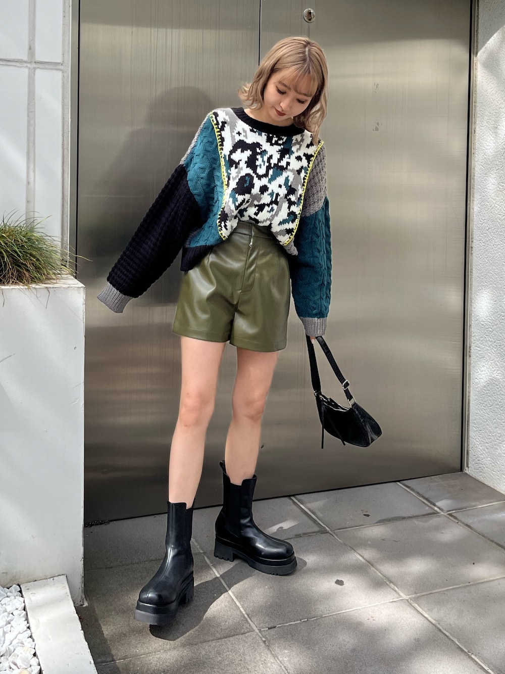 【オリジナル柄ジャガードニット🧶】 (トップス) デザインが可愛い!!!♡ おへそ下くらいの丈になるので前だけパンツインして着用しております! (パンツ) カーキの色が深みある色で合わせやすそう‼︎太もも付け根まで隠れてくれるから安心感抜群です😌🎶 (バック) 長財布収納可能優秀バック‼︎ コーデも合わせやすくてお気に入り🥺 (シューズ) 23.5㎝Mサイズ着用🫶