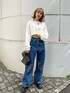 【EVRISカジュアルコーデ】 (トップス) 裏起毛です‼︎クロップド丈でスッキリと 着用して頂けますよ〜♡ ワンポイントのロゴが可愛い😵💫💞 (デニム) 太めのワイドでウエストスッキリ効果‼︎ EVRISお好きな人これ絶対可愛いので 大注目です😳✨ (シューズ) 23.5㎝Sサイズ着用。 雲の上ブーツ再入荷しました♡ 履きやすすぎてずっと履いてます‼︎