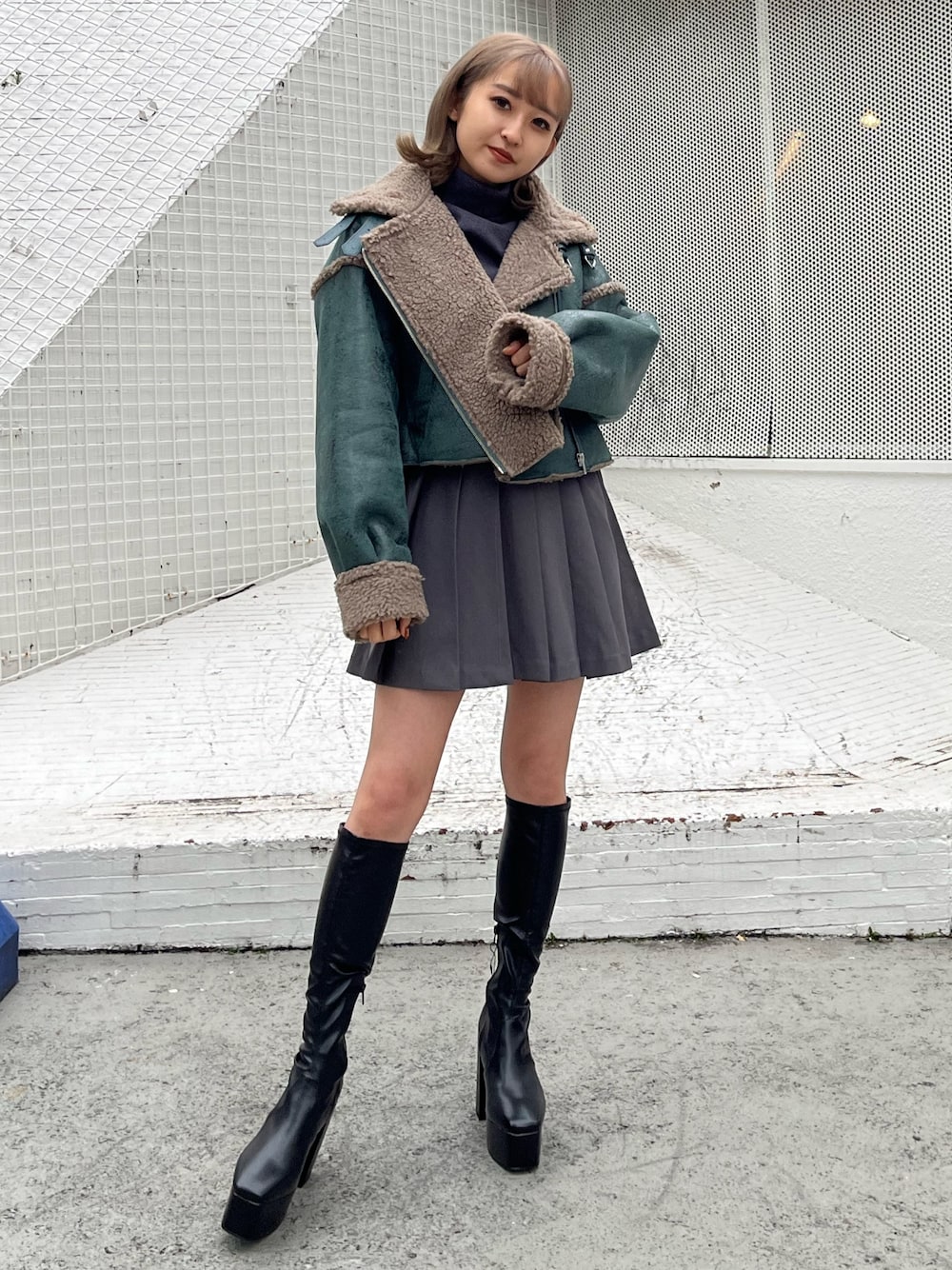 【大人気ショートボアブルゾンコーデ🥳】 (トップス) この色味に一目惚れ♡ めちゃめちゃ可愛い絶妙なカラー! 結構タイト目で着用して頂けますよ! 5枚目の親指可愛いので見てみて下さい🥰 (アウター) 切りっぱなしなのですっきりしたサイズ感すごく軽くてお羽織りしやすいです! (スカート) 156㎝Sサイズ着用。 ベルトでぎゅっと絞って頂けます! インナーパンツつき!安心😮💨 (シューズ) 23.5㎝Mサイズ着用です。 ピタッと細見え効果🌟