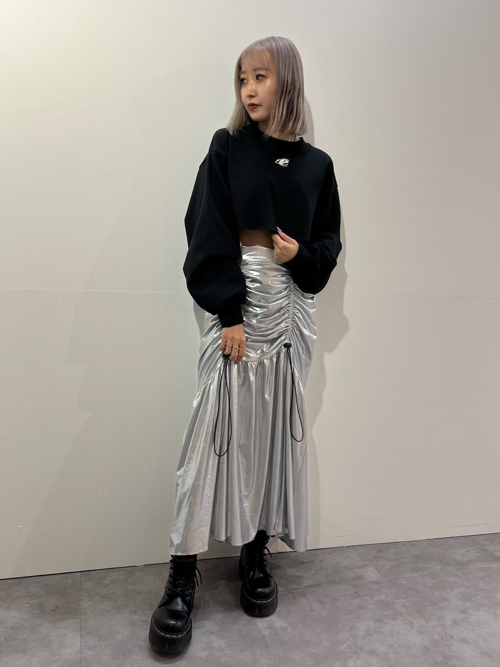 【シルバースカートコーデ🤍】 (トップス) 裏起毛で切りっぱなし! 156センチの私でこのサイズ感です。 体に密着しないので、メリハリ着きます! (スカート) ウエストゴムで楽ちんっ‼︎ くしゅくしゅ絞れます! トレンドのシルバーカラーが大人ぽくて可愛い!!!