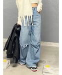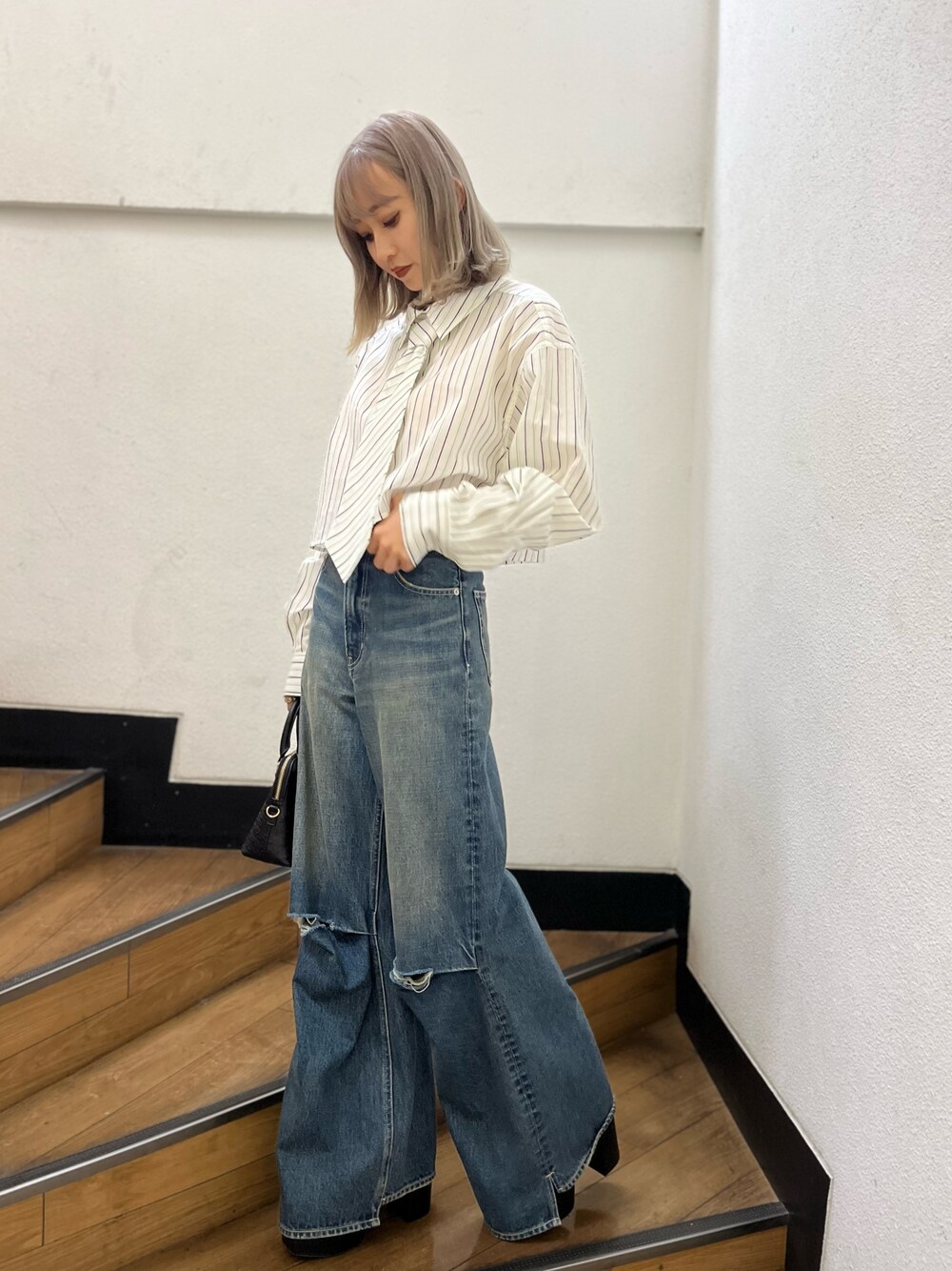 【カジュアルコーデ👔🌟】 (tops) 156㎝でおへそくらいの丈です‼︎ 大きめのネクタイで子顔効果抜群で、 可愛いです♡ (denim) Sサイズ着用。 ウエストタイトなお造りで、 足のライン強調されないのでウエスト細見えします✨ (shoes) 12.5㎝ヒール👠大人気shoes入荷💞 前後の高低差ないのでバランス良く歩きやすいです‼︎