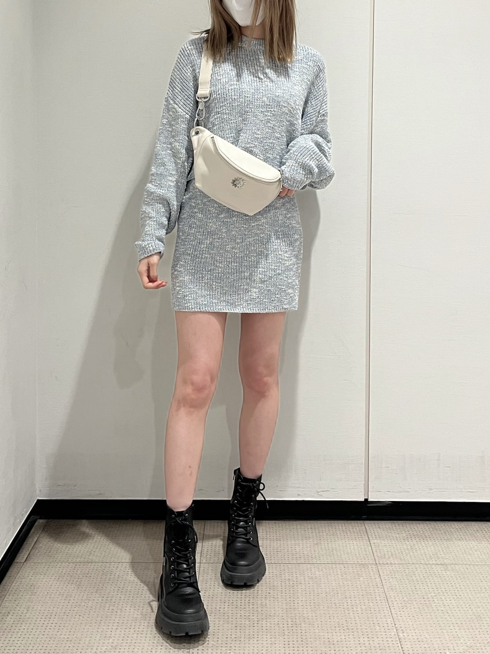 【春カラーセットアップ⤴️🩵】 (トップス) 156㎝おへそが丁度被るサイズです‼︎ ゆったりしている為ヒートテックなど着込んでも頂けます。 ブルーと、ホワイトの糸が混合している為柔らかい春らしいカラーに全色なっております🥺 (スカート) フリーサイズになっております‼︎ 伸縮性があり、ウエストゴムになっている為動きやすく着心地抜群です🥰 156㎝太もも真ん中くらいです。 (シューズ) 23.5cm Sサイズ着用。 スニーカー感覚で履いて頂けるとっても軽いシューズです☺️🩷