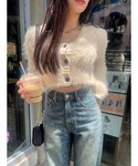 【デートにオススメホワイトニット🧶】 (トップス) 156㎝でおへそ上の着丈です。 お腹出し苦手な方でしたら、薄手のインナーをパンツインしてカーディガンとしても使って頂けます‼︎ 全体的にもふもふして暖かく、ちくちくし無いのでストレスフリーで使って頂けます (デニム) 156㎝Sサイズ着用。 2つボタンでハイウエストなので腰位置高めに見えて足長効果🥺✨ 足のラインは拾わないので足がまっすぐ細見えしてくれます‼︎ (バック) 肩掛けでもハンドでもご使用して頂けます‼︎サニーモチーフが可愛いです💞 (シューズ) 23.5㎝Mサイズ着用 10.5センチヒールで高低差あまり無いのでバランスよく履いて頂けます。