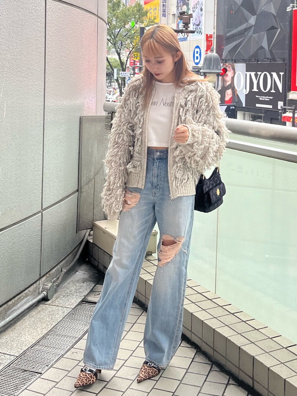 《大人カジュアルコーデ🍂》 (トップス) キラキラのストーンロゴが可愛い‼︎♡ 156㎝おへそ上の着丈です。 (アウター) ボリュームあるフリンジアウター‼︎ キラキラしたお素材ですが、着用時ごわつかず、脇の下ゆとりあるのでたくさん着込めます! (デニム) ハート型のダメージデニムデザイン‼︎ ピンク加工が可愛いですよね🥺 156㎝Sサイズ着用してます。 (シューズ) 23.5㎝Mサイズ着用 かかとの部分がゴム仕様なので靴づれしにくいです👠♡ (バック) ベロア素材で季節感じられるアイテムになっていて光沢があり身につけるだけでおしゃれにみえます‼︎