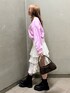 (tops) オーバーサイズのロンTをスタートにインして着用しております。 伸ばすと156㎝でお尻すっぽり隠れるおサイズです。 (スカート) インナーパンツ付きのスカートで、身動きしても安心して使用して頂けます。 アシンメトリーで、動くとヒラっとスカートに動きが出て可愛いです! (シューズ) 23.5㎝Sサイズ着用 軽くて履き心地抜群です。