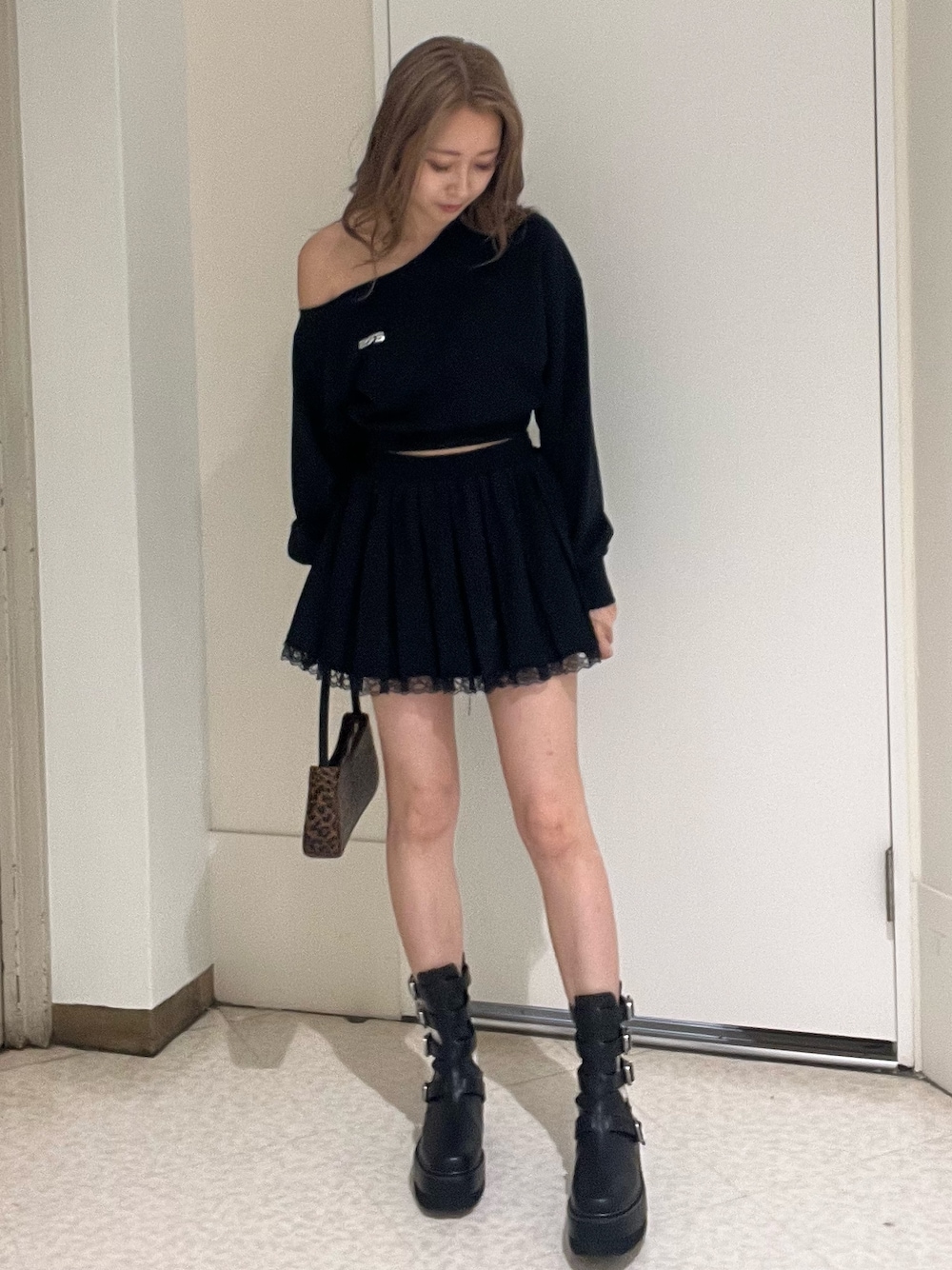 熊澤姫奈(EVRIS)のスウェット「ワンショルダースウェットトップス【セットアップ着用可能】」を使ったコーディネート