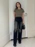 (トップス) 硬めの生地で下着のライン全く気にならないです。着るだけで可愛いく見えます♡ (デニム) 156㎝Sサイズ着用 ダメージが膝上にあるので足長効果✨ (ブーツ) 23.5㎝Sサイズ着用 とても軽くて吐き心地抜群‼︎ (バック) シルエットが可愛い持つだけでポイントになるアイテムです‼︎大人気のサニーモチーフ付き🌞