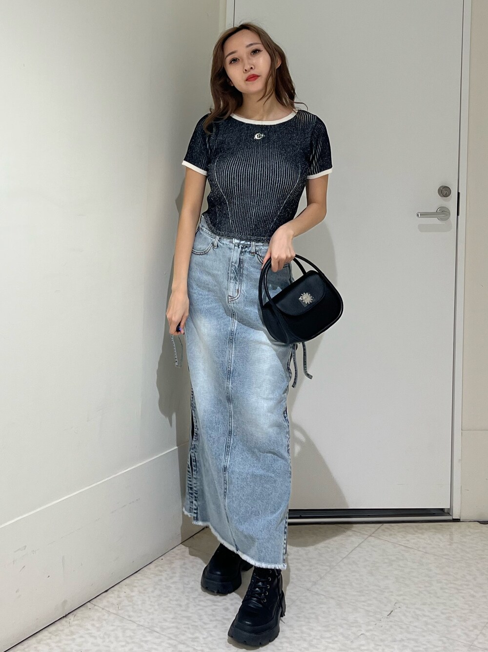(トップス) 後ろのデザインがポイントのトップス🥰 下着は何着て頂いても見えないです‼︎ (スカート) 156㎝Sサイズ着用 ウエストタイトで、足のラインを拾わない為腰回り細見えします! タイトすぎないので身動き取りやすいです‼︎ (ブーツ) 23.5㎝Sサイズ着用 とても軽くて吐き心地抜群‼︎ (バック) シルエットが可愛い持つだけでポイントになるアイテムです‼︎大人気のサニーモチーフ付き🌞
