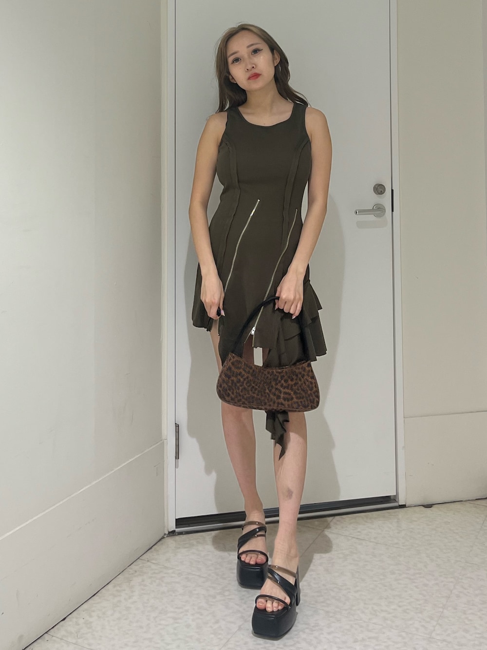 熊澤姫奈(EVRIS)のワンピース「アシンメトリージップタンクワンピース」を使ったコーディネート