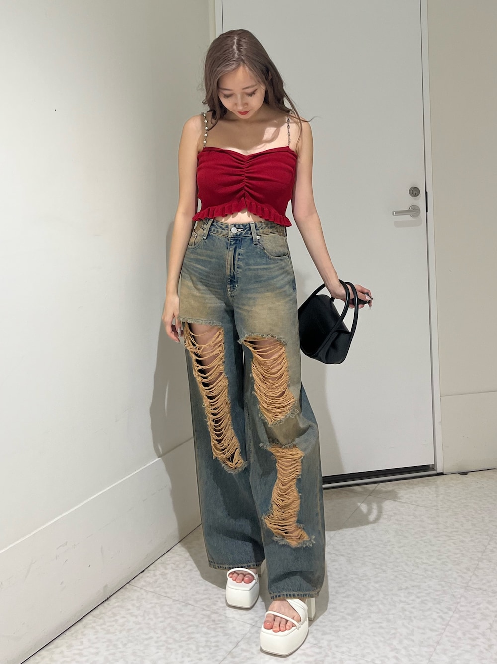 熊澤姫奈(EVRIS)のデニムパンツ「ハイダメージワイドデニムパンツ」を使ったコーディネート