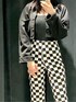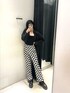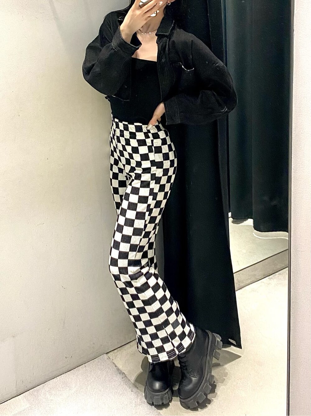 今年トレンドのブロックチェック柄のパンツが主役コーデです♪ 【パンツ】※168cm/Fサイズ着用▶︎ウエストがゴムなので楽ちんです◎形がフレアでウエストから太ももはピタっとしてます!ショート丈のアウターで合わせても脚長効果◎ですし、ロングのアウターやお尻が隠れるくらいの丈感の羽織物と合わせて頂くと、女性だと張っている腰回り隠せるので脚長+細見えもできます♪ また、どんなトップスとも相性がよくモノトーンで合わせてモードスタイルに、Tシャツなどラフなアイテムを合わせてカジュアルなスタイルもおすすめです! 【ジャケット】丈感が、ショートなのでスタイルアップ効果抜群です!! また、袖周りがゆったりとしているので春夏は勿論沢山使っていただけますし、秋くらいになってもニットなど中に着れるので、長い期間着ていただけます♪
