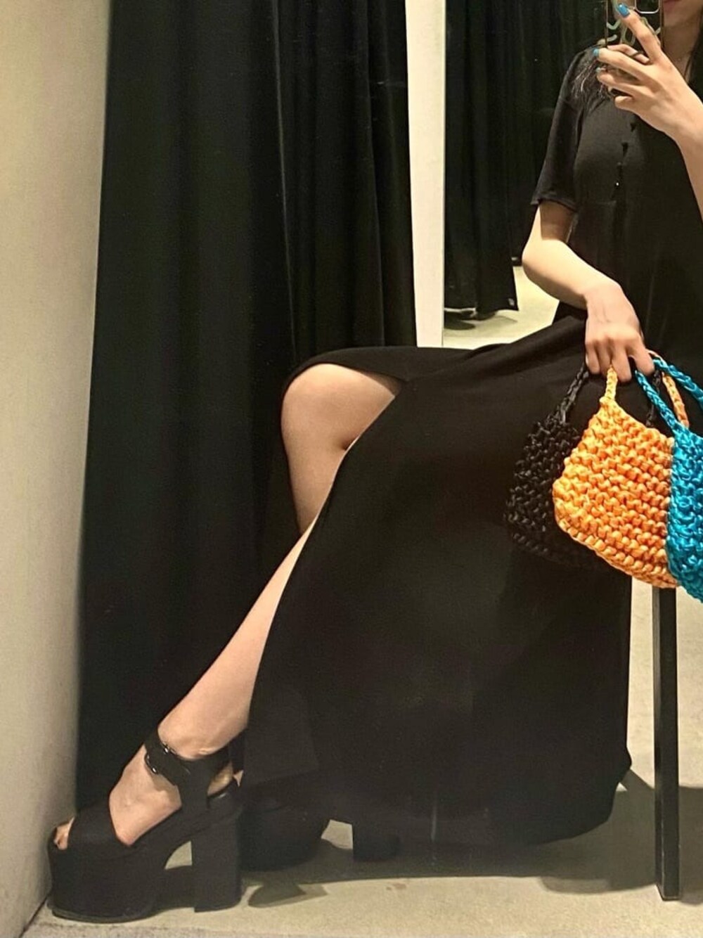 大川まなみ(EMODA)のサンダル「コンビネーションハイヒールサンダル」を使ったコーディネート