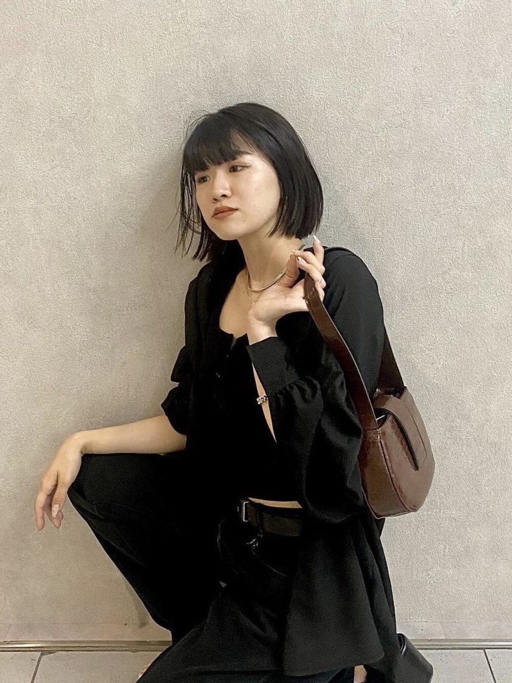 オールブラックコーデに差し色で、 カラーのバック持つとコーデがシンプルすぎなくなるので、おすすめです◎ 肩にかけて、持ちやすいながさで二つ折り財布と、ハンカチ、ケータイは余裕で入るサイズ感でした♪ バックは、3色展開でブラックもございます!
