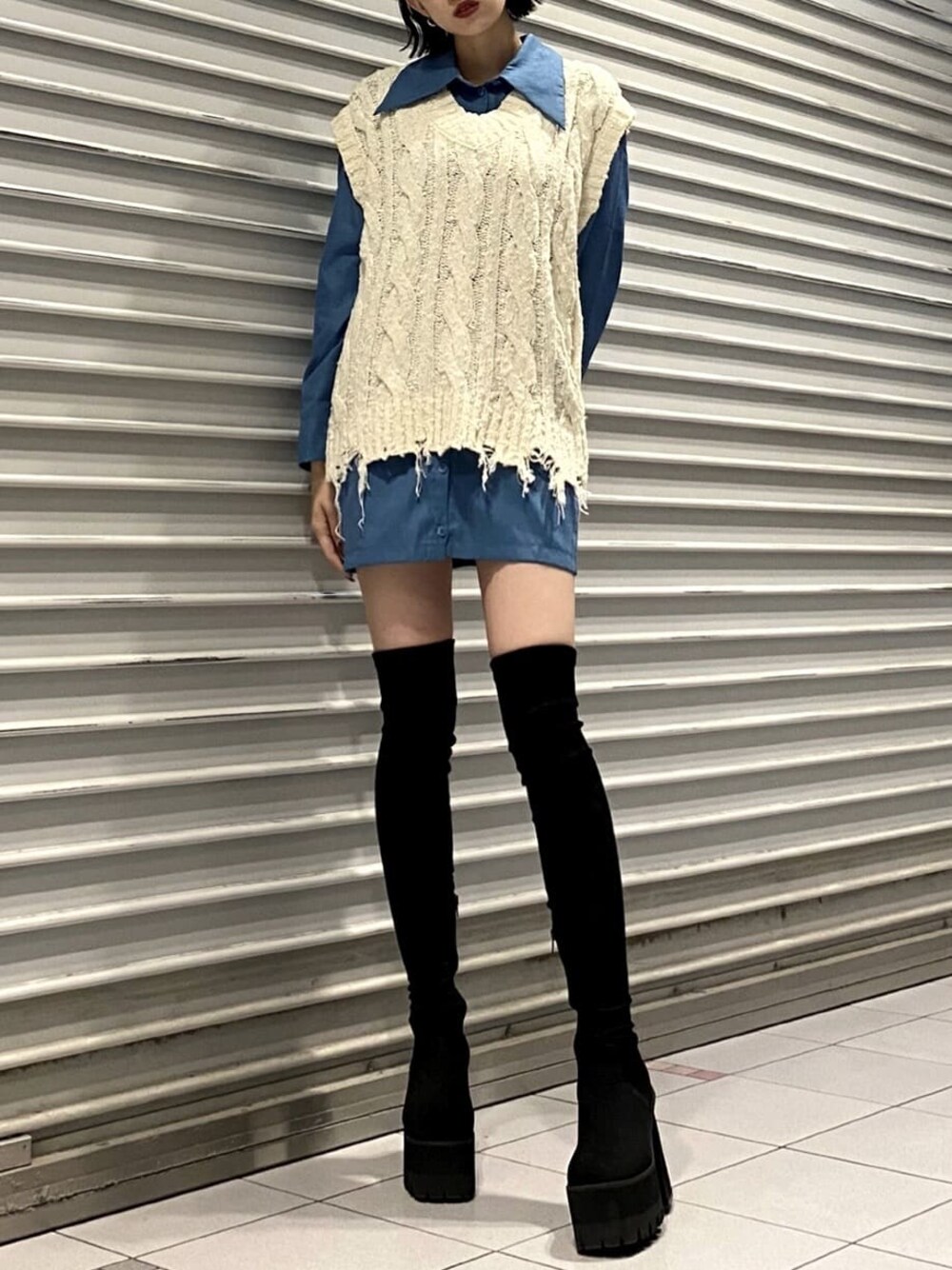 大川まなみ(EMODA)のベスト「ミックスオーバーベスト」を使ったコーディネート