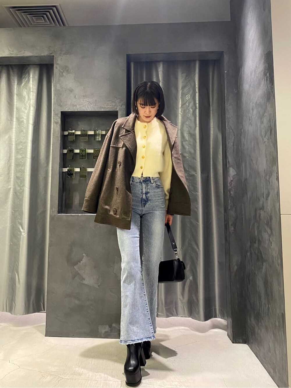 大川まなみ(EMODA)のブーツ「センターシームショートブーツ」を使ったコーディネート