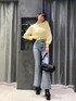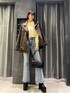 【トップス】金ボタンがアクセントの、ニット♡ シャギーニットで、肌触りもチクチクしないので着心地◎前開けてカーディガンとして着ても◎デニム合わせでも可愛いですし、スカートと合わせても可愛いです! 【デニム】ストレッチが、効いているのでとても履きやすいです!! 1つボタンでも、おへそが隠れるくらいしっかりハイウエストなので、脚長効果も◎