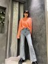 【ニット】チクチク感の少ないニット♪発色が良いニットなので、1枚着るだけでオシャレに見えます!168cmで、この丈感です!お尻も隠してくれるので、パンツスタイルは勿論ミニスカートを合わせてワンピース風で着ても可愛いです♡ 【デニム】ストレッチの効いたデニムです!フレアデニムは特に、固い生地感の物が多いですがこのデニムは、生地が柔らかいのでとても履きやすいです! 一つボタンで、おへそも隠れるくらいハイウエストです♪一つボタンなので、自然と脚長効果◎です!