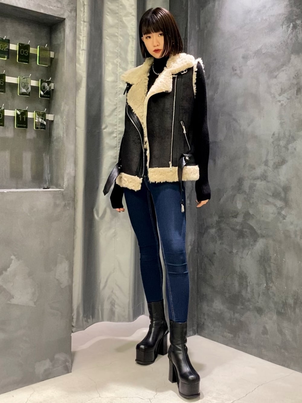 【アウターが主役のコーデ🌟】 インナーをシンプルにして、アウターはデザイン性のあるものを♪ シンプルだし、簡単にオシャレに見えるコーデ✌️ 🧩アウター▶︎168cmでお尻半分隠れるくらいの丈感です! デザインが、ライダースのベストになっていて珍しいですよね♪ 中は、全面ファーなので暖かいですっ 襟を立てると首も暖かいので、マフラーいらずです🙆♀️ レザーの生地感も、柔らかく重たくもなかったです💞 中には、このように黒のタートルでも可愛いですしロンTやスウェットなど合わせてがっつりカジュアルにしても可愛いです!!
