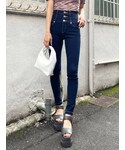 大川まなみ(EMODA)のデニムパンツ「【ELDER】NUDEハイウエスデニム」を使ったコーディネート