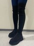 🌟高身長もニーハイで脚盛れコーデ🌟 【アウター】 168cmで、お尻半分くらいの丈感です🙆♀️ 骨盤周り隠してくれるので、脚がスッキリ見えます♪ なんと言っても、裏側が全面ボアなのでとっても暖かいです❤️🔥 そして、軽い!!店頭で羽織って頂いたらびっくりされる程です😳 袖の長さは、変えられるので高身長さん低身長さん関係なく着て頂けます! 【ブーツ】 高身長さん、お待たせ致しましたっ🫡‼️ と言わせて下さいっ ローヒールのニーハイが登場致しました!! ヒール低めでも、変わらず脚が細長く見えました🙆♀️少しストレッチが、効いているので動きやすく下がりにくかったです♪ 私はシューズ、普段25.0〜25.5の甲高で幅狭なんですが、個人的にはLサイズで少し大きく感じたので足のサイズ大きめの方にもおすすめです🤩