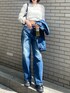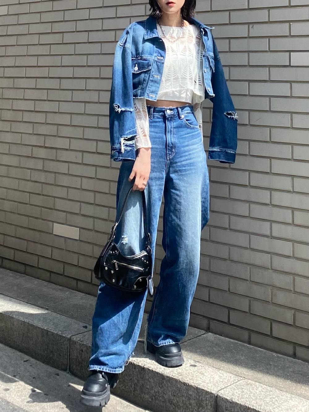 【デニムオンデニムコーデ👖】 〈トップス〉▶︎身長170cmでこの丈感です!ニット生地でチクチク感ゼロです!サラッとしてるので夏でも着て頂きやすいと思います! 〈インナー〉▶︎ 身長170cmで、三つボタンのボトムと合わせた時にインしなくても良いくらいの丈感です! カップが、しっかり縫い付けられてるので洗濯機に回してもカップだけ飛び出る心配ないです! 〈ジャケット〉▶︎身長170cmでウエスト下くらいの丈感です。袖周りゆとりがしっかりあるので、中にニット着て秋までも着れます🙆♀️ 〈デニム〉▶︎ おへそも隠れるくらいのハイウエスト感。身長170cmでも足首までしっかり隠れる丈感です。 〈ブーツ〉▶︎見た目によらず、とっても軽いです。私は甲高の幅狭で、普段25.0〜25.5cmの靴を履いていて、着用時はLサイズ履いてます。 〈バッグ〉▶︎見た目よりも、中に物が入るバッグ👜ミラーもついてます♪