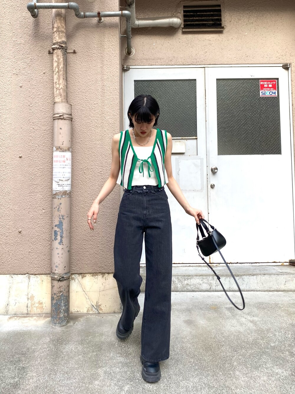 【脚を出したくない人の夏コーデ💚】 〈ベスト〉→身長170cmでこの丈感です!ニット生地でも、フワフワ系では無いので夏場でも着て頂きやすいです! 〈インナー〉→透け感のない、厚めの生地感なのでインナーが透けてしまう事がないです🙆♀️ チクチク感も無く着れます! 〈パンツ〉▶︎身長170cm/骨格ナチュラルでこの丈感・シルエットです✨ ウエストのフリンジが目線を上にしてくれるので、脚長効果倍増してくれます♪ 〈ブーツ〉▶︎見た目によらず、とっても軽いです。私は甲高の幅狭で、普段25.0〜25.5cmの靴を履いていて、着用時はLサイズ履いてます。 〈バック〉▶︎ショルダーバックとしても、使える2wayです♪